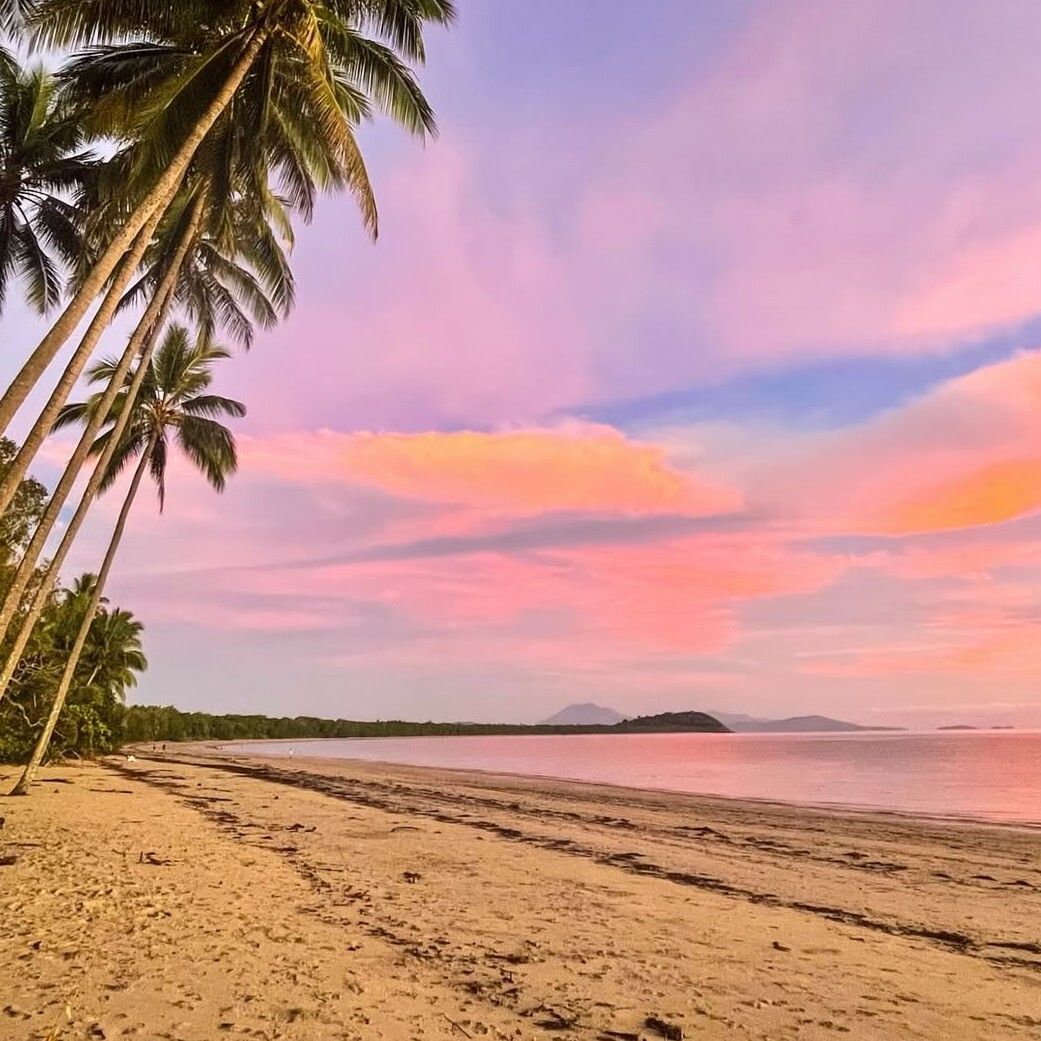 Four Mile Beach in Port Douglas is at its dreamiest under pink skies, with leaning palms and soft light stretching across the shoreline. It’s one of those simple, stunning moments that stays with you long after the tide goes out.